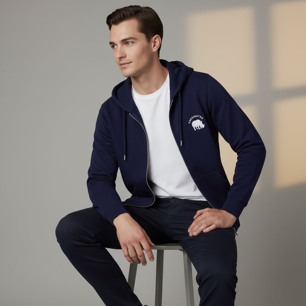 Avec son allure sportive et décontractée, le sweat à capuche zippé bleu marine Harrington est idéal pour un look casual. L'accent est mis sur le confort avec ses 2 grandes poches, et son intérieur molleton d'une douceur inégalée
