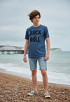 T-shirt imprimé Rock&Roll, coloris bleu canard, en coton biologique, allie confort et durabilité. Sa texture douce et respirante garantit un port agréable tout au long de la journée.